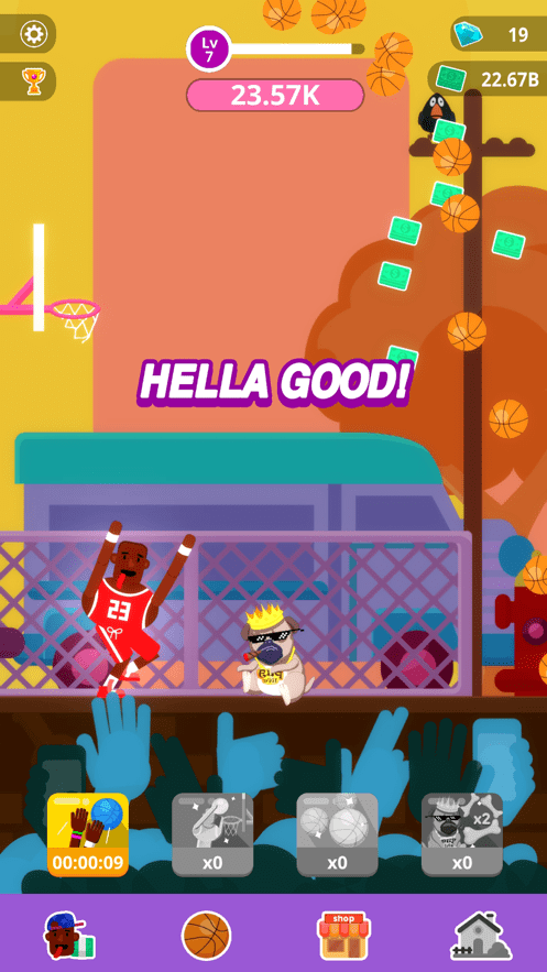 2.每一个关卡都有不同的挑战难度,需要玩家更好的提高自己的扣篮技能。