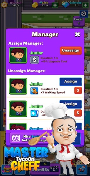 主厨空闲大亨游戏是一款能够给玩家带来趣味厨房模拟人生的手机游戏,奇趣多多的挑战将在这个卡通世界里给玩家带来,让你能够体验不一样的人生,还有着超多有趣的挑战任务等待着你去开启,每一个走进游戏之中的玩家都将开启一段全新的人生。