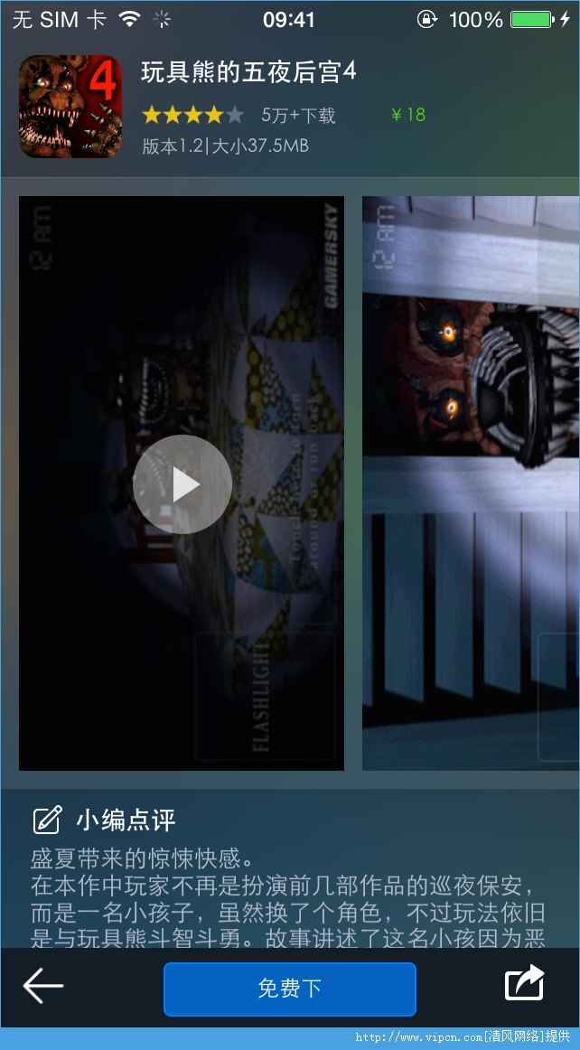 4、后面有一个“免费下”的按钮,单击后即可免费在线下载和在线安装。玩具熊的五夜后宫4免费版说明:
