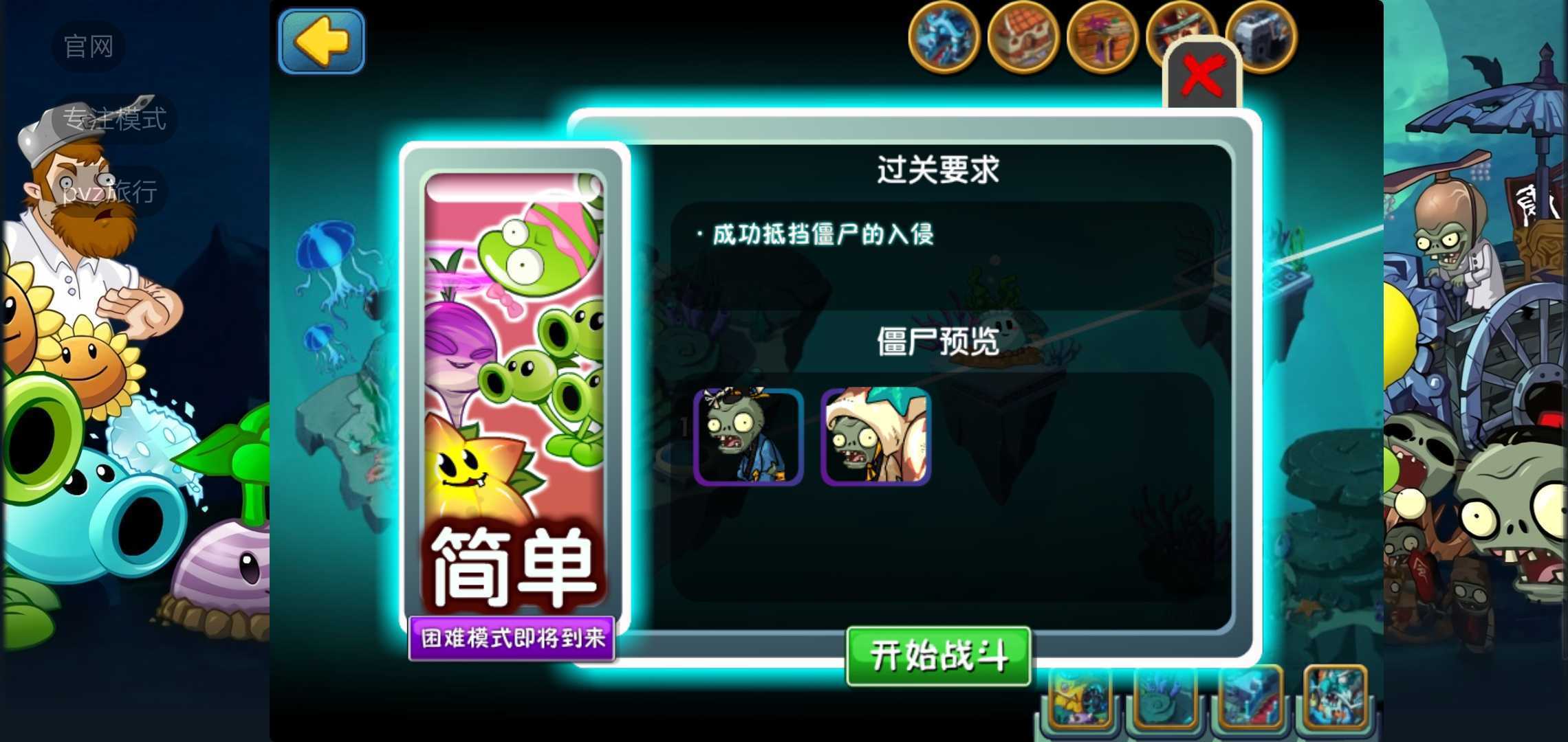多达50个的冒险模式关卡设定,从白天到夜晚,从天台到游泳池,场景变化多样。