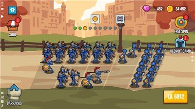 3,解锁升级兵种,收集你的军队摧毁雕像并赢得战斗,矿工,士兵和雕像可以在每场战斗前进行升级,增加火柴军团的战斗价值。