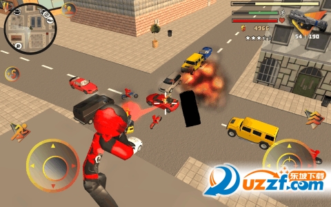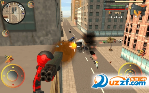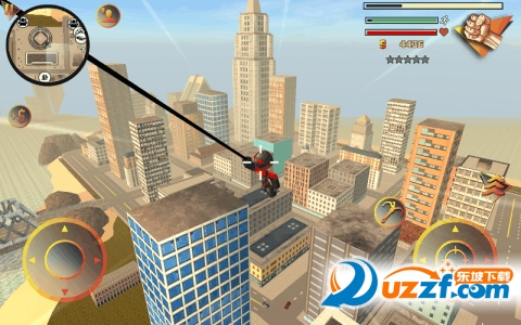 这个红色的角色就是你所操控的角色,可以快跑,跳跃,也可以扔出绳索,可以挥拳和腿踹,围绕这个游戏的名称,绳索这个东西就是这个角色的灵魂,它的作用非常的大,可以对静态物品(座椅,栏杆,骑车等)造成大量伤害和击飞效果。