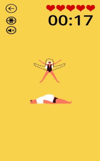 2.每个人物的动作与框中一致时,你就会闯关成功。如果不一致,没有出现在框中等等情况都会消耗一个体力值,消耗完毕闯关失败