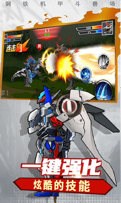 钢铁机甲斗兽场游戏是一个趣味战斗游戏多种不同的机甲来展开对战,这款游戏画面场景设定的十分有意思,快速反击下去成为机甲之王,多种不同的机甲来展开对战,每一个机甲都有不同的玩法和操作。