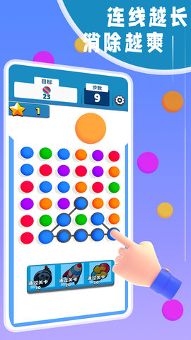 游戏详情减压小能手正式版是一款各个年龄段的玩家都很适合玩的休闲解压的小游戏你可以去点击相同颜色的按钮,玩家需要点击并拖动手指来连接相邻的同色球球,完成不同游戏挑战内容你可以拥有非常丰富的奖励,有兴趣的玩家来下载试玩一下吧。