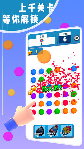 简约的小清新画风,舒适流畅的体验,快解锁关卡,一起来消除并得到更多的分数!