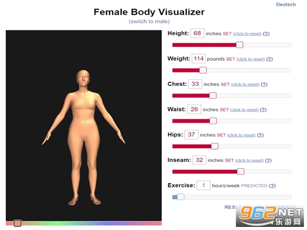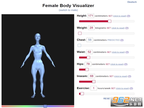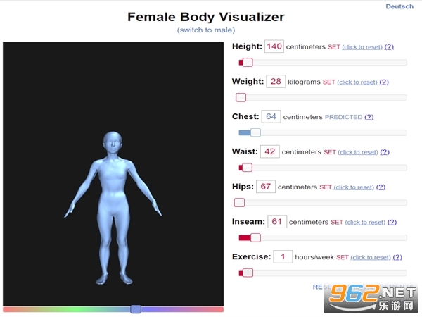 通过这个网站能够方便的展示,通过输入个人的身高、体重、三维、上下比例等参数自动生成三维体态;