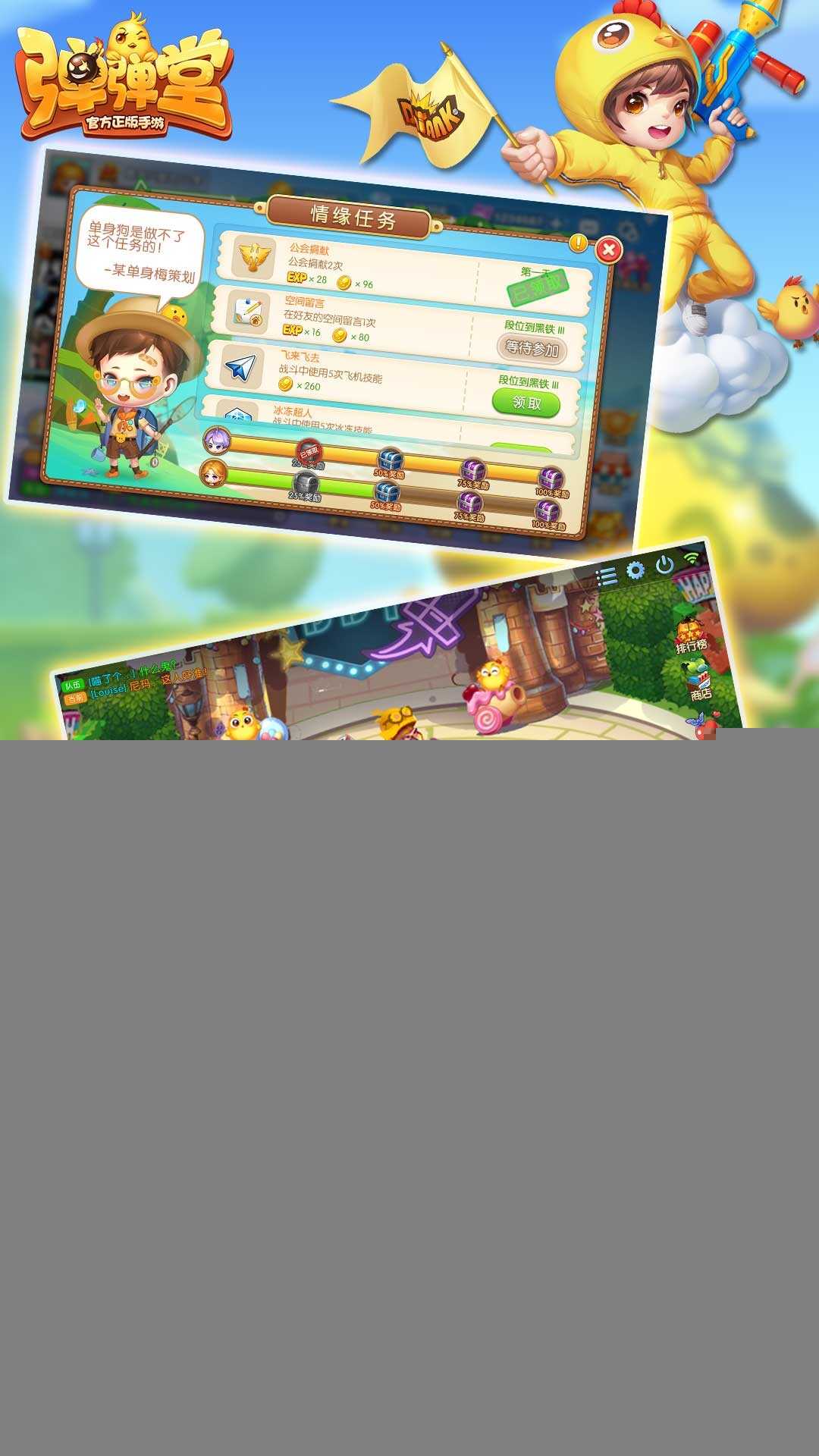 靓丽个人空间,华丽婚礼殿堂,在这里,你可以跟所想之人携手与共,还可以给心爱之人制造一场浪漫的婚礼......CP、挚友一起作战;恋人、夫妻一起浪漫,来弹弹堂手游,你能获得的,可远远不止是快乐这么简单!