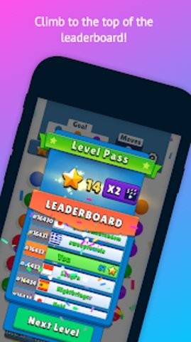 玩家可以在游戏中来消除各种颜色的球球,通过连结相邻的相同颜色的球来完成消除得分,这里还有更多精彩的关卡可以挑战,能够解锁各种不同的主题,还能够和全球玩家来享受排行榜竞技的乐趣。