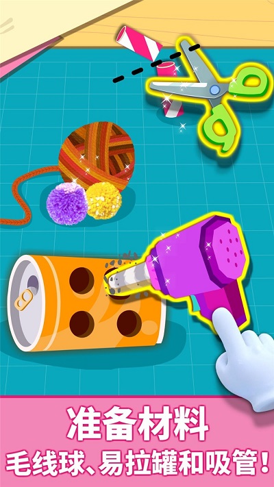 宝宝动物拼贴是一款手工类小游戏。孩子可以跟随游戏学会用纸盒做鳄鱼,饮料瓶、毛线做狮子,气球、报纸做母鸡等等,创意无限,想象力爆棚。快来开动脑筋,创意拼贴,成为手工小达人吧。