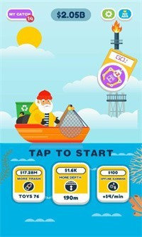 2、丰富的打捞工具可以选择来使用,不断的收集金币来解锁更好的装备让你打捞更多垃圾。