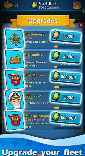 龙里县也可以获得金币收益,你的船也会自动捕鱼,还可以升级你的船长、改进船只,增加利润。