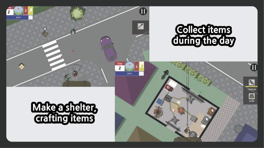 这款死城:僵尸生存继承了生存类手游相同的玩法,就是“出门一把刀,装备全靠采”和“为了生存,什么都能吃”以及“好死不如赖活着,看见能动的就干”的三个游戏理念。