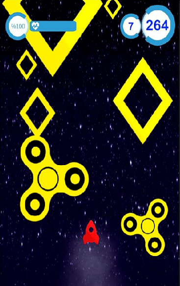 左右滑动屏幕,控制小火箭飞行,躲避星际中的障碍会增加分数。