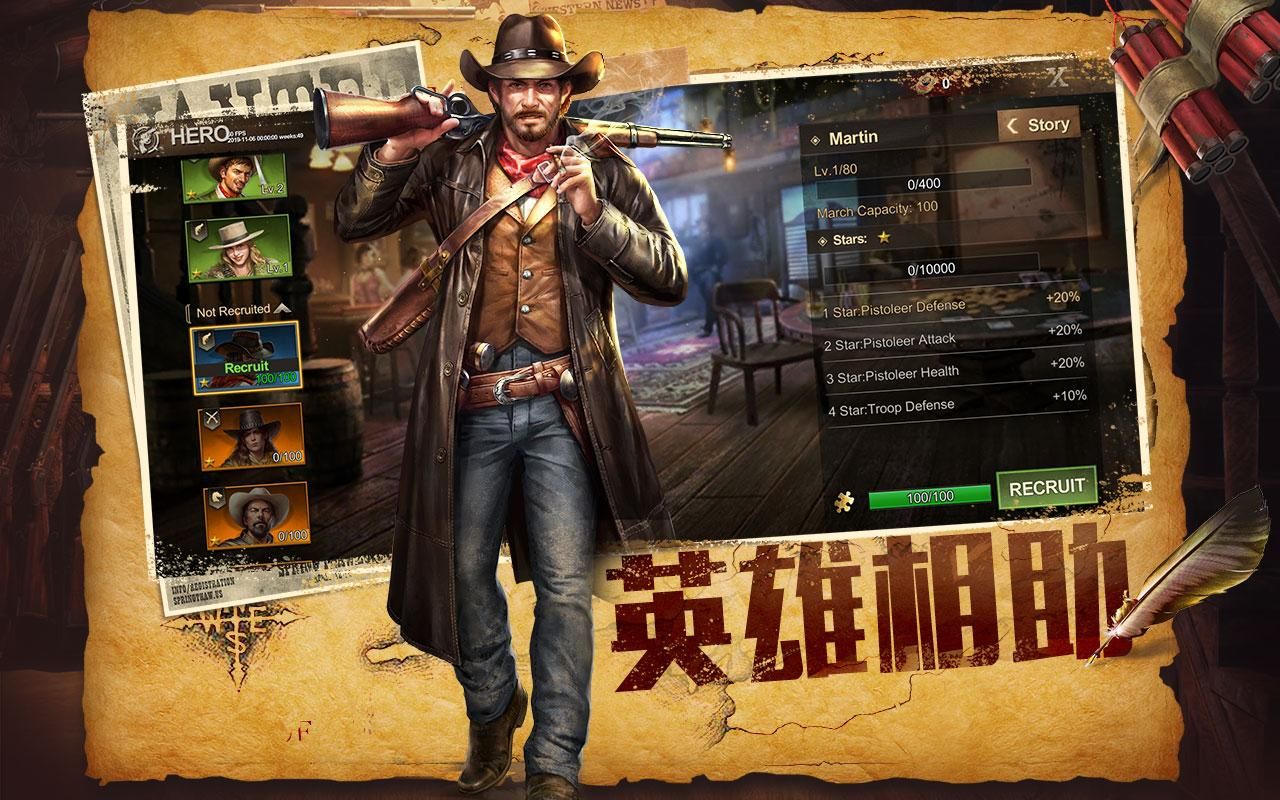 3.征募西部英雄到你手下!这种源自自真正历史时间的风云人物将协助你得到财富和威势。