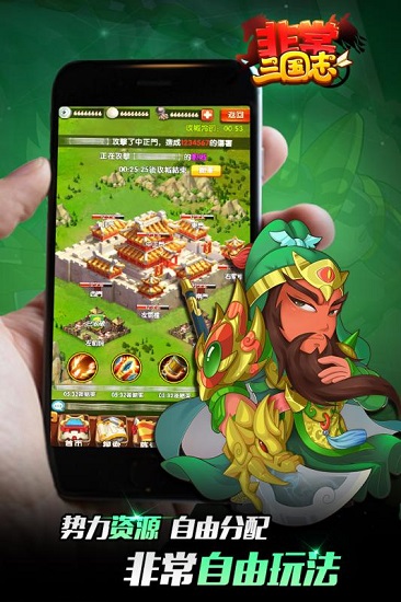 非常三国志,非一般的经营策略手游,加入了许多卡牌类游戏的推图和卡牌收集的游戏元素,300余三国将领静候招募,升级、强化、组合卡牌完美融合,攻防两条搭配路线,简约中体现谋略,拼武将更拼头脑,没有无敌的组合,只有更强的阵容。百变的战术,独特的地形,让你更好的体验乱世生存之道!极具带入感,让人身临其境!作为三国来了的姐妹篇,游戏中熟悉的q版人物,熟悉的视觉风格带玩家重温经典。并且游戏延续主打轻松战斗、丰富养成、自由的社交玩法,摒除了打卡练级的无聊繁琐,让玩家收放自如!