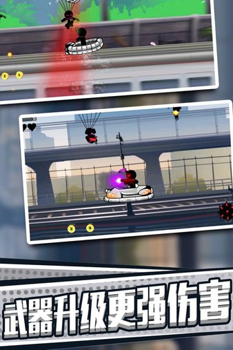 在游戏中玩家将亲临激烈刺激的战场,单枪匹马杀入重重危险当中,和暗黑的火柴人侵略者进行作战,利用优秀的策略性打败所有敌人。这也是一款战争系列的策略飞行射击游戏,玩家需要利用自身优势对抗一支强大的军队。游戏中玩家可以通过击败敌人获取金币和拾取空投等方式获取丰富的奖励。