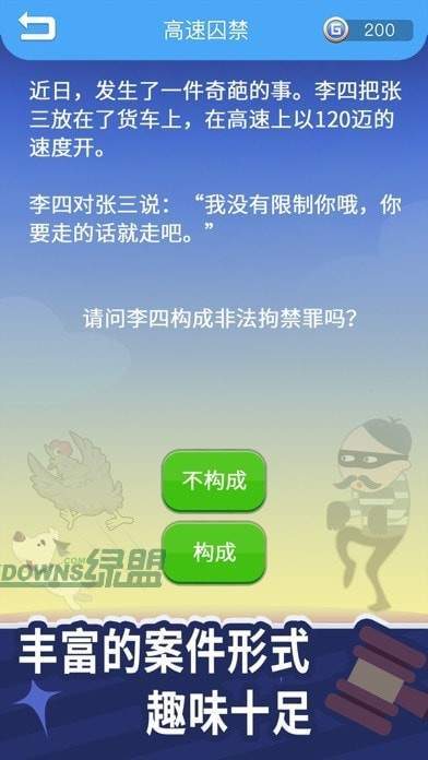 法外无狂徒安卓版游戏中玩家扮演是一名学艺不精的律师,经常要向老师请教问题,来审办各类案件。本游戏以趣味对话,简单问答形式,将法律知识普及给玩家,让玩家能够一边轻松玩游戏,一边掌握最新最全的法律法规。