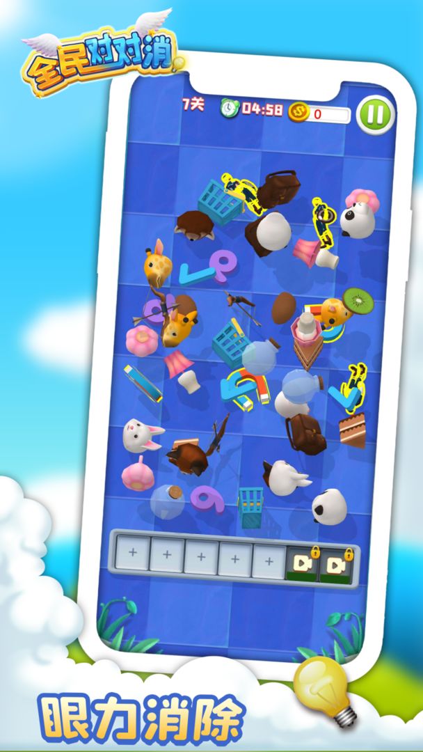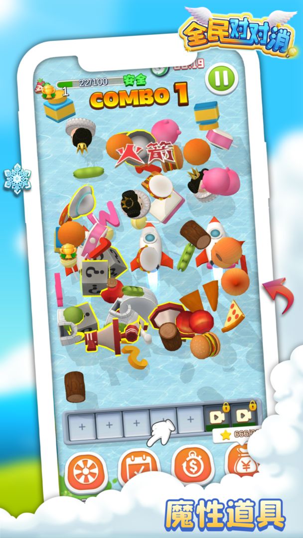 全民对对消是一款休闲益智游戏,游戏画面休闲有趣,三消消除玩法,在一堆乱七八糟的物品中找出相同的进行消除,考验眼力的同时还要细心,诸多有趣的关卡等你体验,对全民对对消感兴趣的小伙伴们快来下载吧。