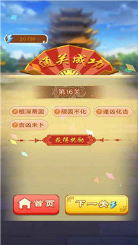1.游戏中的关卡设计了多种不同的成语知识,轻松进行游戏挑战