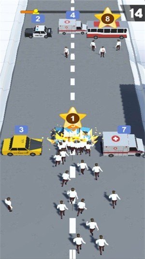 推车上面之路是一款非常受玩家们喜爱的冒险闯关类游戏向前冲刺,清理拥堵的道路,玩家需要率领自己的工作团队推开车辆,俗话说人多力量大。
