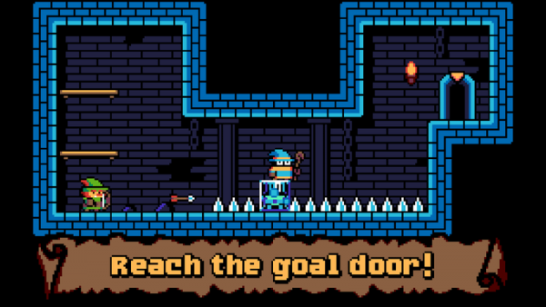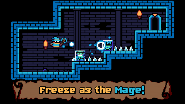 可爱怀旧的像素画风,在进入游戏的时候就能选择角色了,倒也没有什么限制,自由度很高,后面的关卡中遇到的危险需要不同角色的特性才能解决。