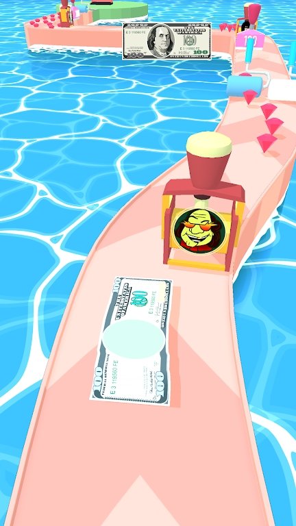 印钞机赛跑中你要控制一个未完成的钞票跑酷,这里有很多的印钞机,印出不同图案,需要辨别。
