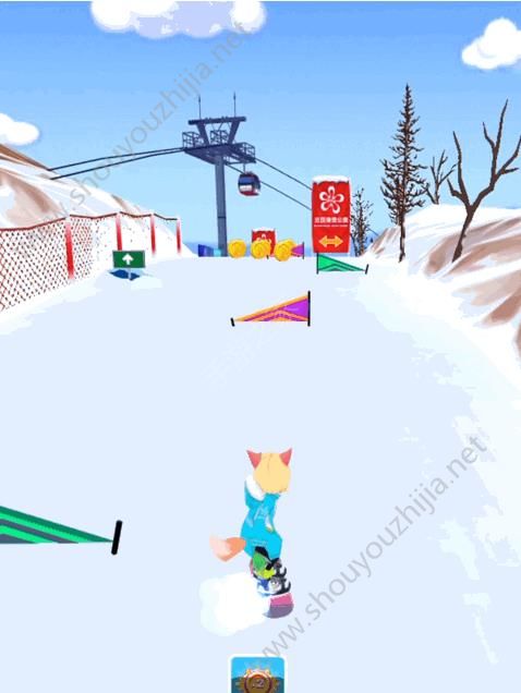 玩家可以在雪道上收集金币,积累的金币多你就可以购买更多的物品,为自己选择更高级的滑雪设备;