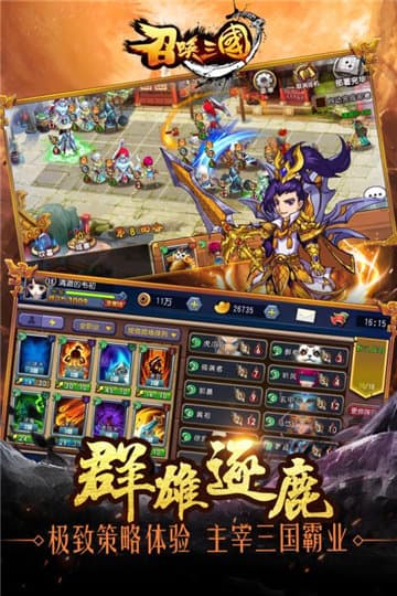 召唤三国游戏上线更有赛季冒险哦,加入三国冒险玩法,全新的对抗实力进行选择哦,不一样的实力获取哦,全新的策略道具进行升级,在三国世界之中进行冒险吧,极品神将选择哦,解锁强力的招式吧,很好玩的三国游戏哦