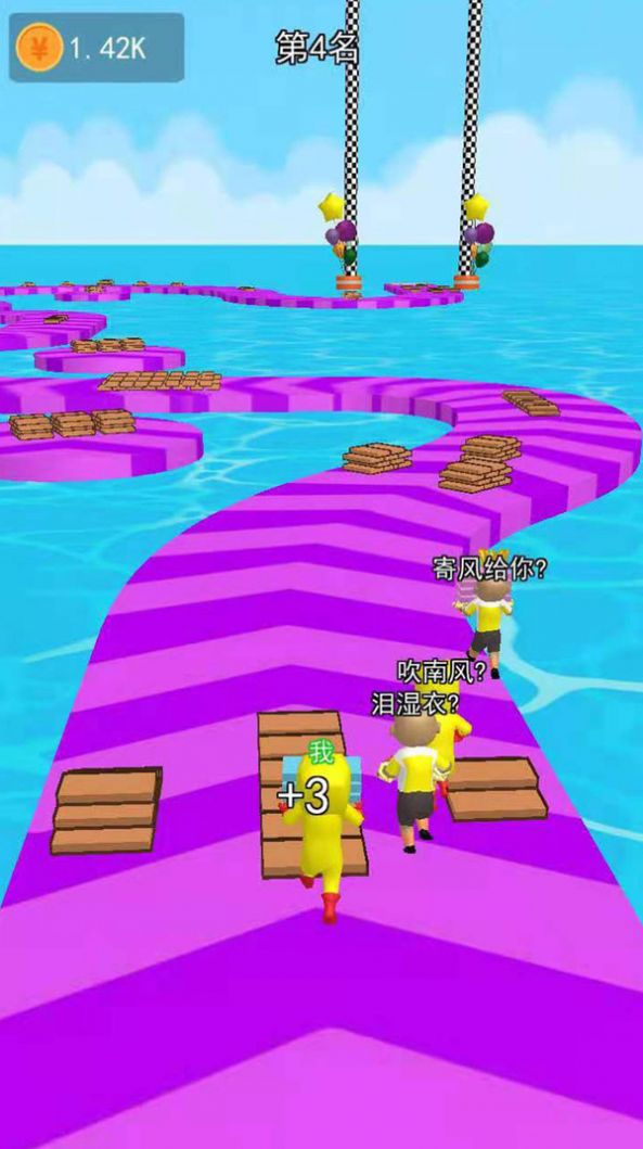 玩家需要拾取脚下的木板,用这些材料来进行建造铺成一条道路;