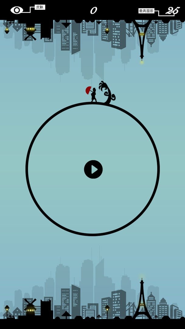 轮回空间是一款休闲解压游戏,游戏画风简约,随时都可以玩,玩法简单,是为玩家在闲暇之时极尽放松,解放压力的,控制雨伞先生在一圆圈上不停的奔跑,对轮回空间感兴趣的小伙伴们快来下载吧。