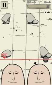 虽然玩法很简单,但操作起来挺有难度,只要其中一个撞上石头就会粉碎,游戏就会GAME OVER,屏幕上的两个拇指就会转过来对你露出嘲讽的笑容。