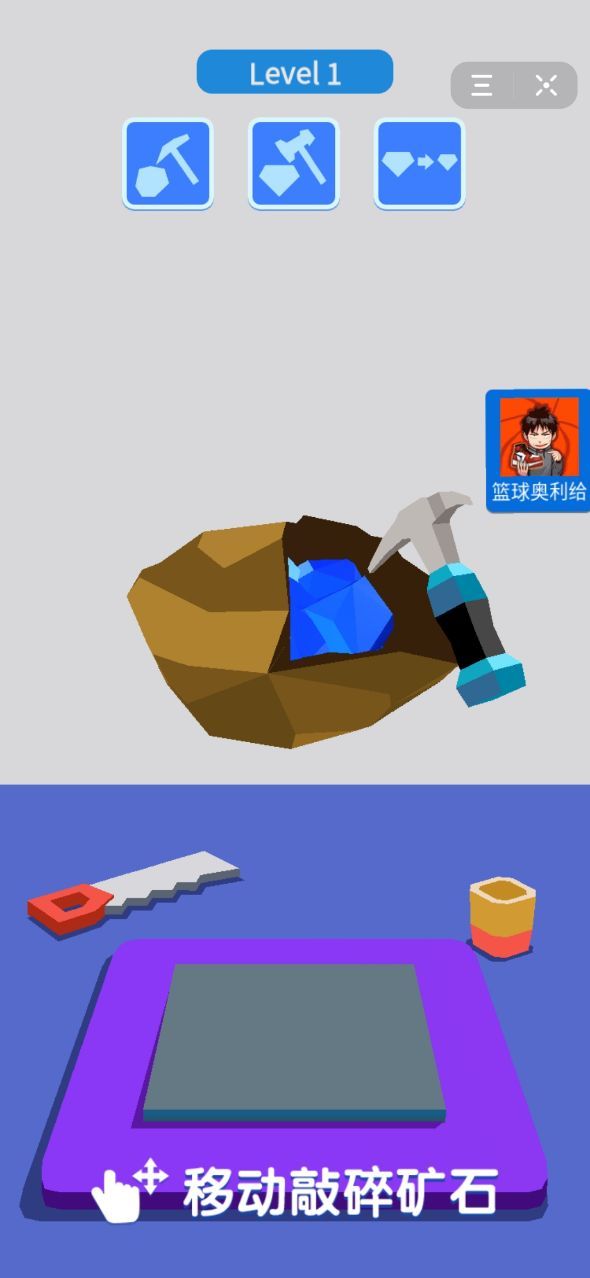 2、最开始你所获得的宝石只是一个原石,只有将外面的一些石头敲掉,才能见到内部的宝石。