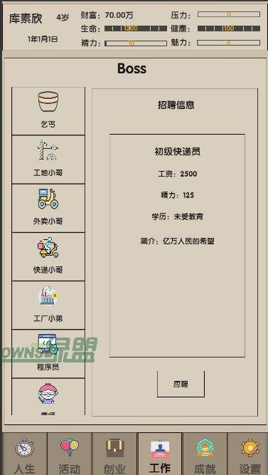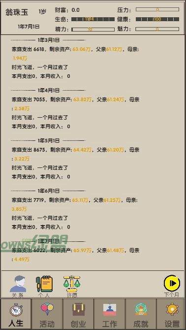 主题为模拟人生的生死线,游戏中包含了你出生到死亡的完整生命。