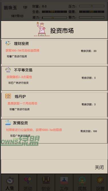 未来人生2测试版是一款超级简单有趣的文字游戏,从出生到死亡,游戏为你创造了无数种可能,让你的生活变得更加美好!展示你的实力,创造一个伟大的事业。