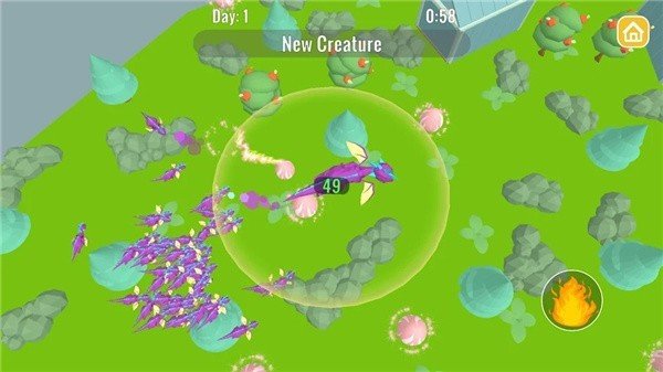 2.除了各种技能之外,你还能吃掉一些道具,把其他攻击你的生物全部挡在外面。