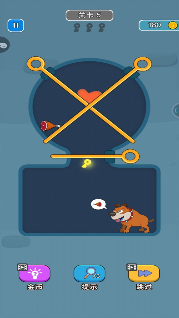 关卡中有不同颜色的铁条和物体,如果铁条画错了,所有的物品都会掉在羔羊的头上。