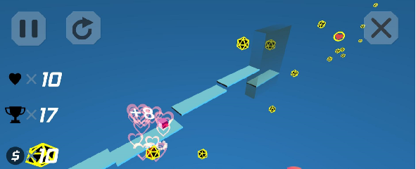 控制方块跳跃前进,收集爱心,以赢得更好的分数与奖励。