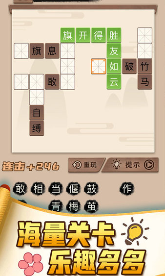 成语打天下游戏是一个非常好玩的成语手游又可以在学习成语的同时,游戏中学习到这些知识也不会让玩家觉得厌烦,让自己成为一个文艺少女或是文艺青年,并了解其背后的典故。