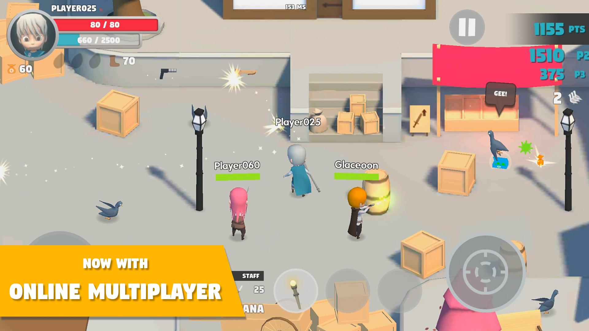 鸽子袭击Pigeons Attack是一款卡通趣味射击冒险游戏,玩家操纵角色参与冒险,追逐鸽子的踪迹,揭开事情的真想,冒险过程中保证自己的生命,在商店购买武器和道具武装自己。