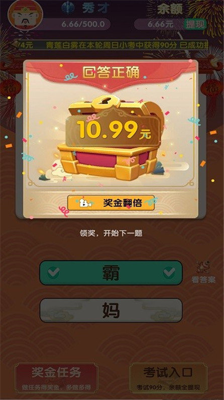 一边猜题一边播种丰厚红包大奖超级的风趣,还能学会更多的成语知识