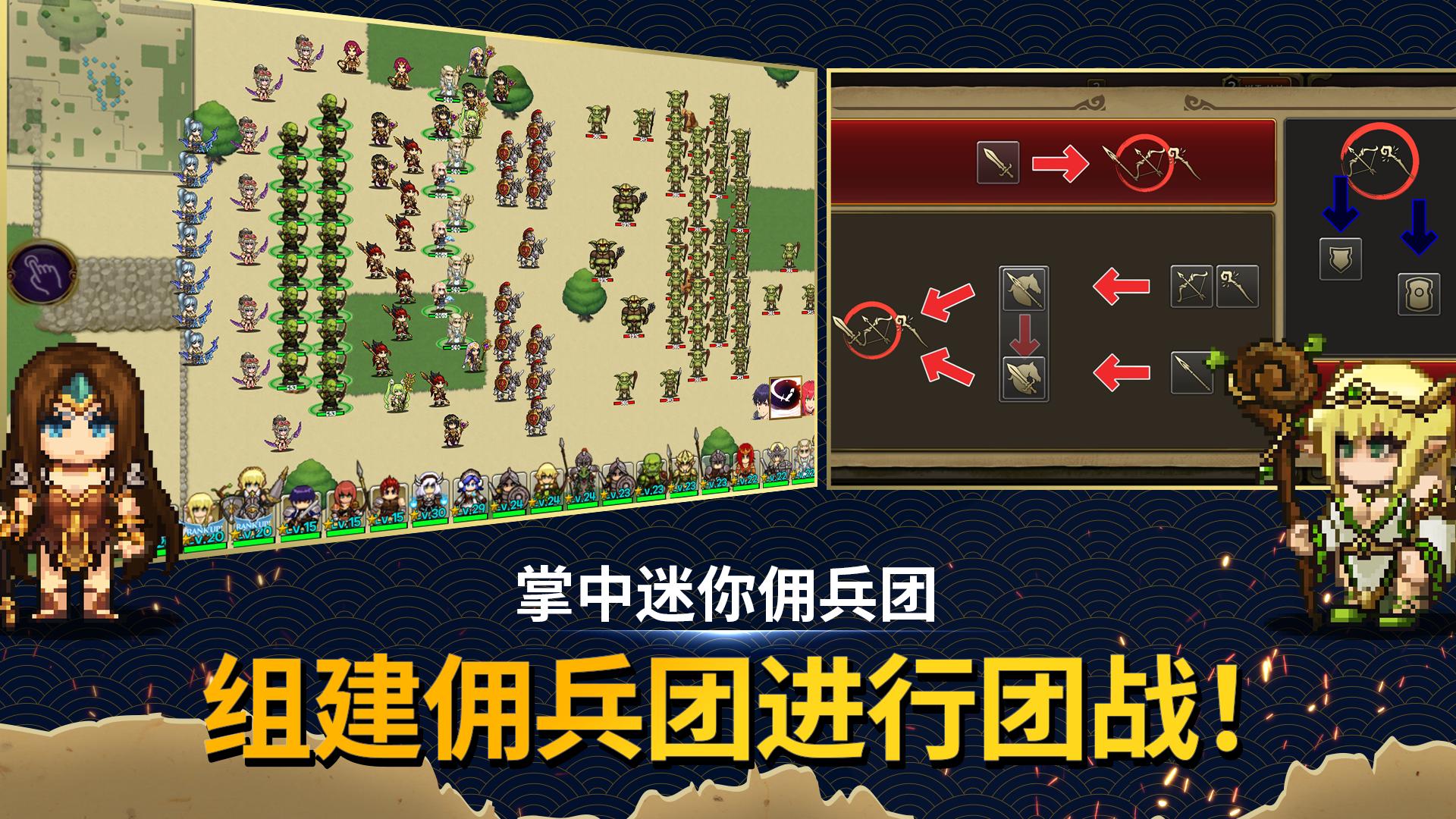 佣兵物语军团战略是一款益智策略休闲类游戏,玩家可以打造自己的专属佣兵团, 指挥你的士兵们参与战斗,不同的兵种相互配合会起到意想不到的效果,研究阵容和布局,开始你的兵团战斗吧。