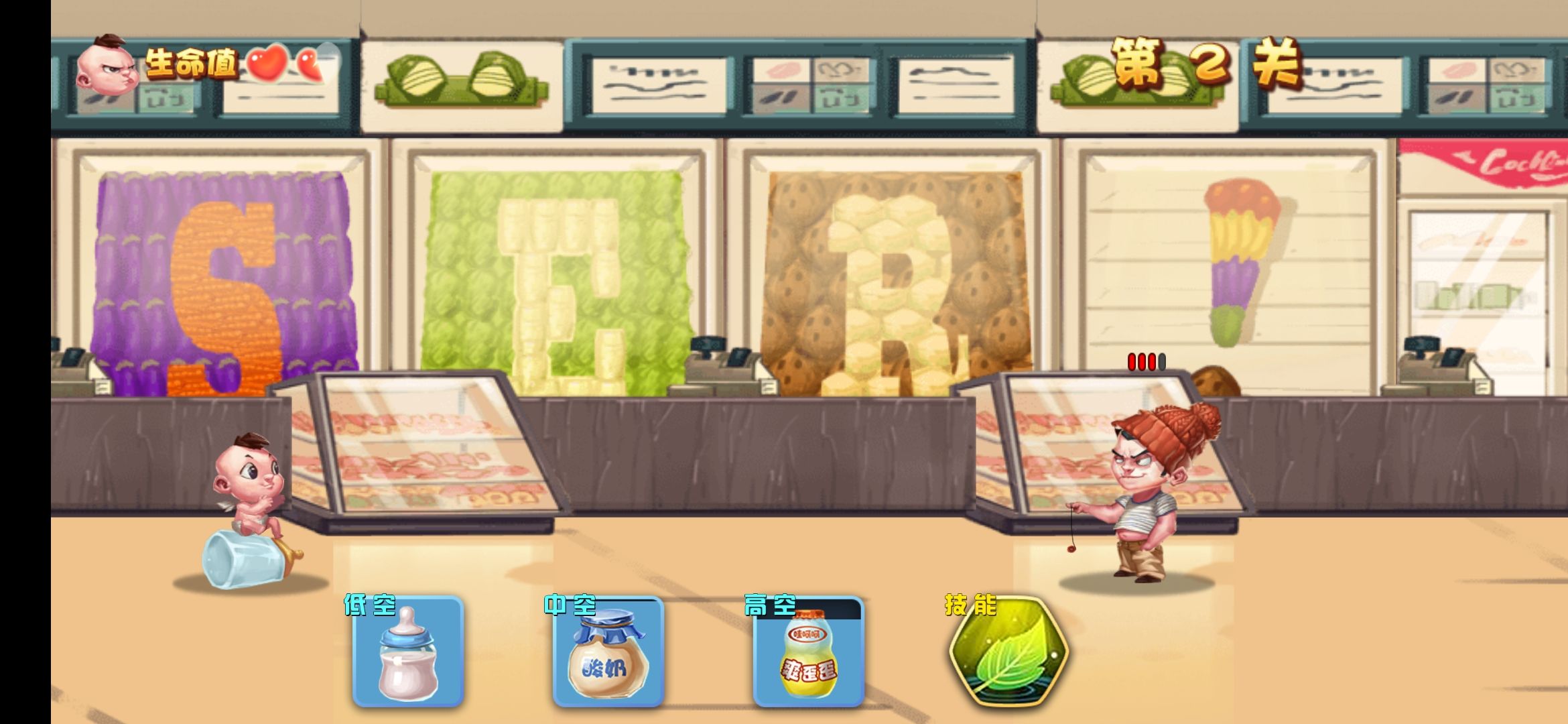 1、你将在游戏中操纵差异的人物来进行挑战,你需要根据投掷零食来进行不一样的挑战。
