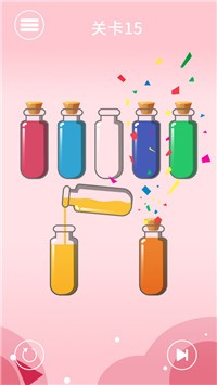 3、经典玩法开始,将试管中的所有液体进行排序,使每个试管中的水颜色一致。
