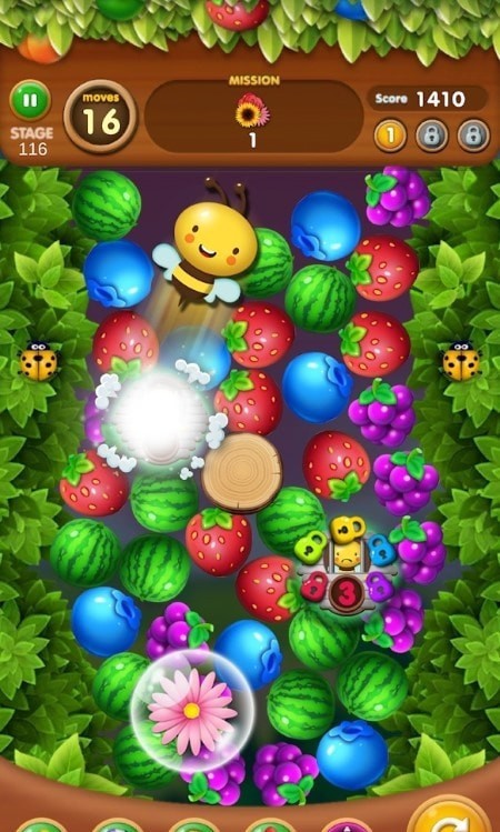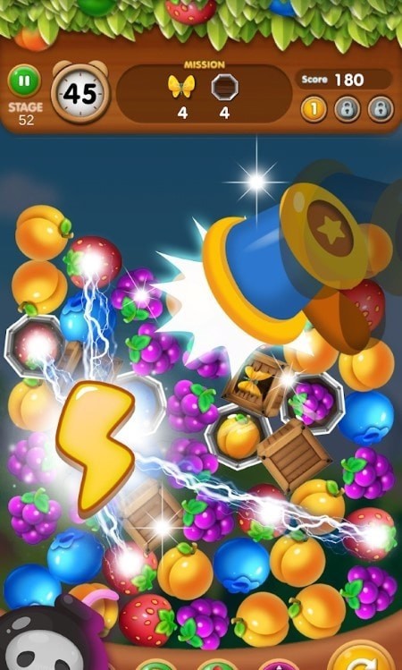 连接三个相同颜色的水果。连接更多水果,就会形成连珠炸弹。利用魔法球连珠帮助妖怪。