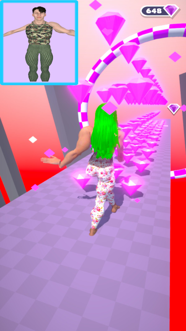 玩家沿着路线走动,在跑酷的过程之中领取化妆品和衣物,玩家需要时时刻刻收集衣服增加积分,打造出最完美的角色,给玩家带来新颖丰富的游戏体验感,躲避不同的机关和陷阱。