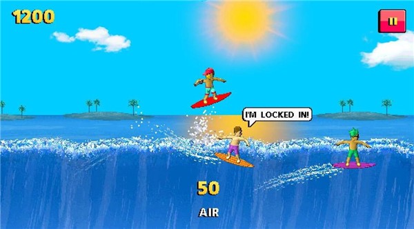 超级冲浪兄弟安卓版(Super Surf Bros)是游戏商RAC7制作的一款以冲浪为主题的体育手游,游戏操作模式很简单,按左手萤幕人物就会向上,按右边萤幕人物就会向下,要在指定的条件或是时间内达到分数。击败对手来达成衝浪界的第一人吧!