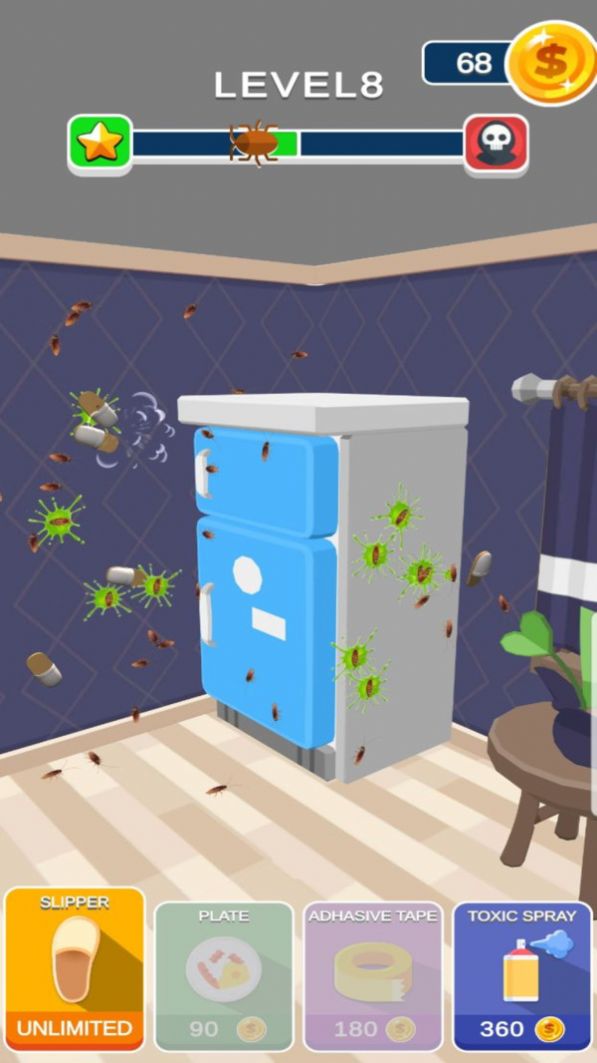 蟑螂必须死安卓版是一款十分考验玩家反应力和观察力的休闲益智类游戏玩家的家中到处都是蟑螂,在生活中害怕蟑螂的你可以在游戏中锻炼胆量啦,非常解压的玩法,获得的奖励就会越多。