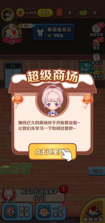 这是一个刚刚开始运营的商场,玩家的目标只有一个,让它变成超级商场。从一开始的一间小店铺,持续发展成琳琅满目的超级大商场,各式各样的商铺应有尽有,赶紧加入打造商场的大队伍里吧!