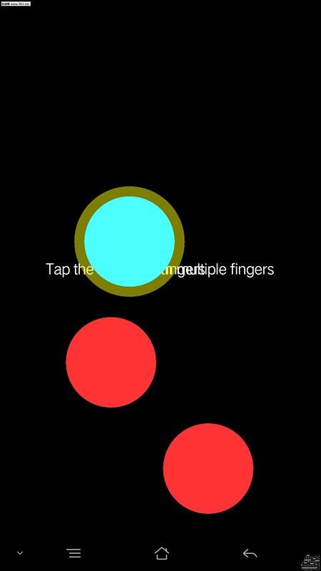 每个人将一个手指放到屏幕上,就可以看见每个手指都有光圈。如下图,是两个手指。